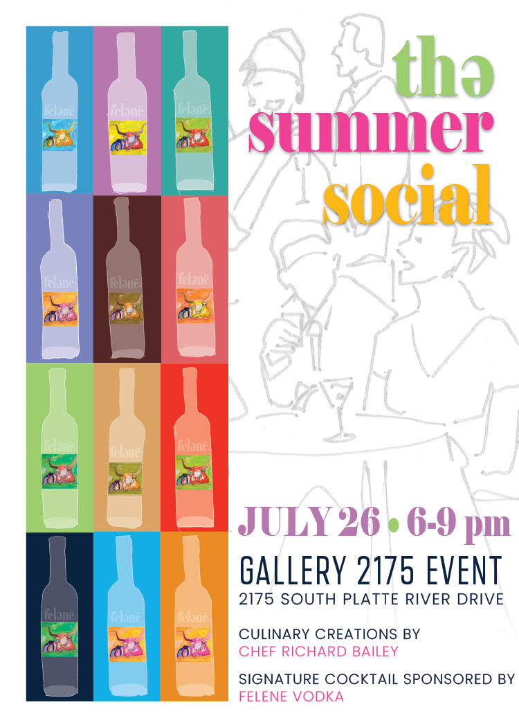 cf&co invites you to THE party of the summer when we bring together fine art, fascinating friends, and fabulous food and drink! As a special announcement, Colorado's own Felene Vodka will be onsite to debut a limited release of its newest product, Pear Flavored Vodka, graced by Carrie Fell's art on the label.