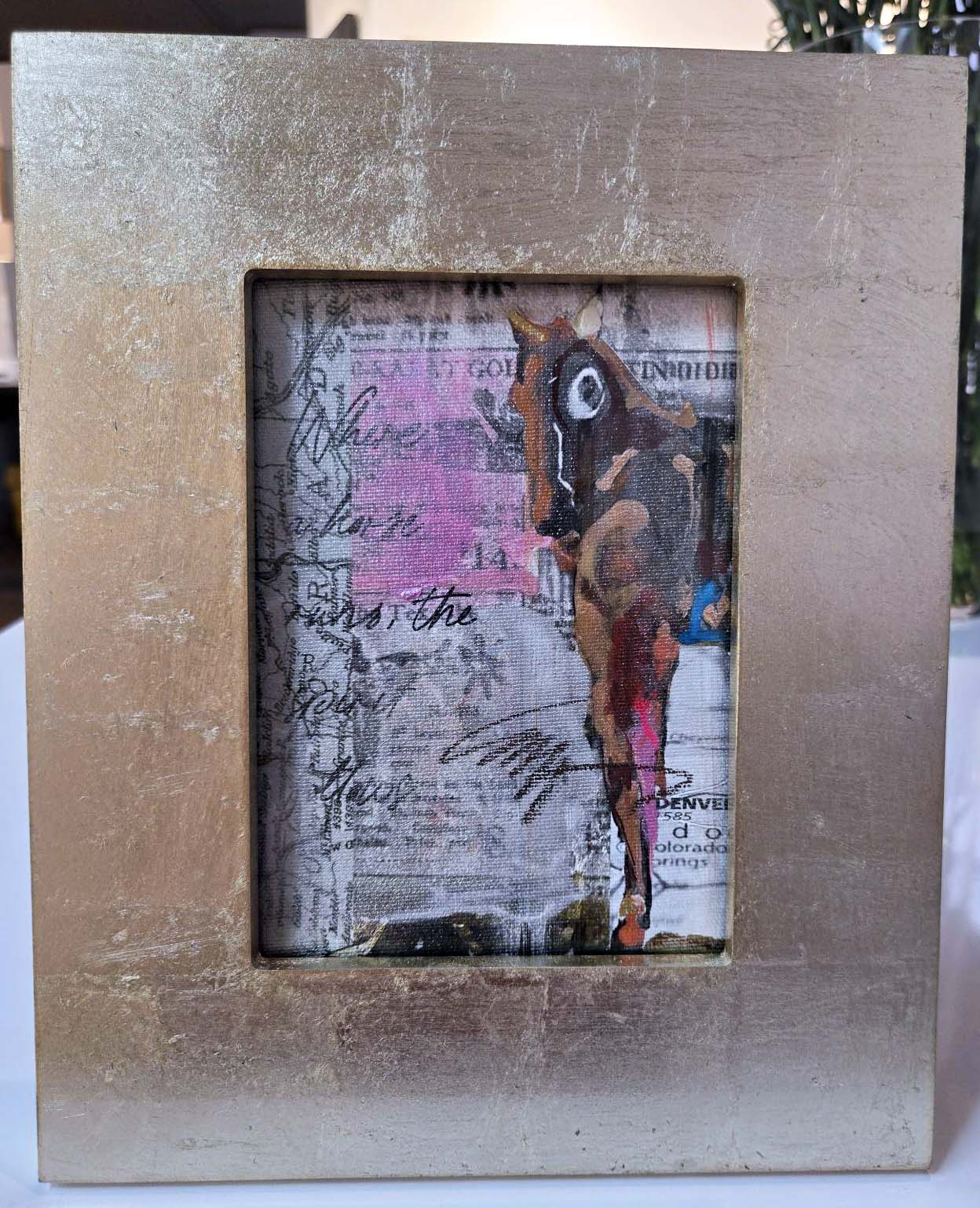 Small renderings from Carrie's "Unexplored Edges" gallery show in January of 2026 capture both Carrie's inimitable art and her poetic perspectives on life. Each unique piece is finished in a beautiful leafed, solid wood frame, Signed and registered, these 5" x 7" works are mini masterpieces that will bring gallery style to any environment.