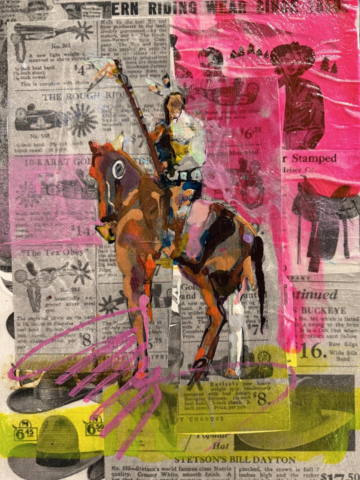 From the first collection in 2026, Unexplored Edges, comes this series of mixed media on board, emphasizing the acrylic and oil details Carrie is best known for, against a background of vintage Western advertising pieces. In a smaller format, Carrie's inimitable style, characterized by loose composition and precise scale, showcases all of her artistic talent in these remarkable works.